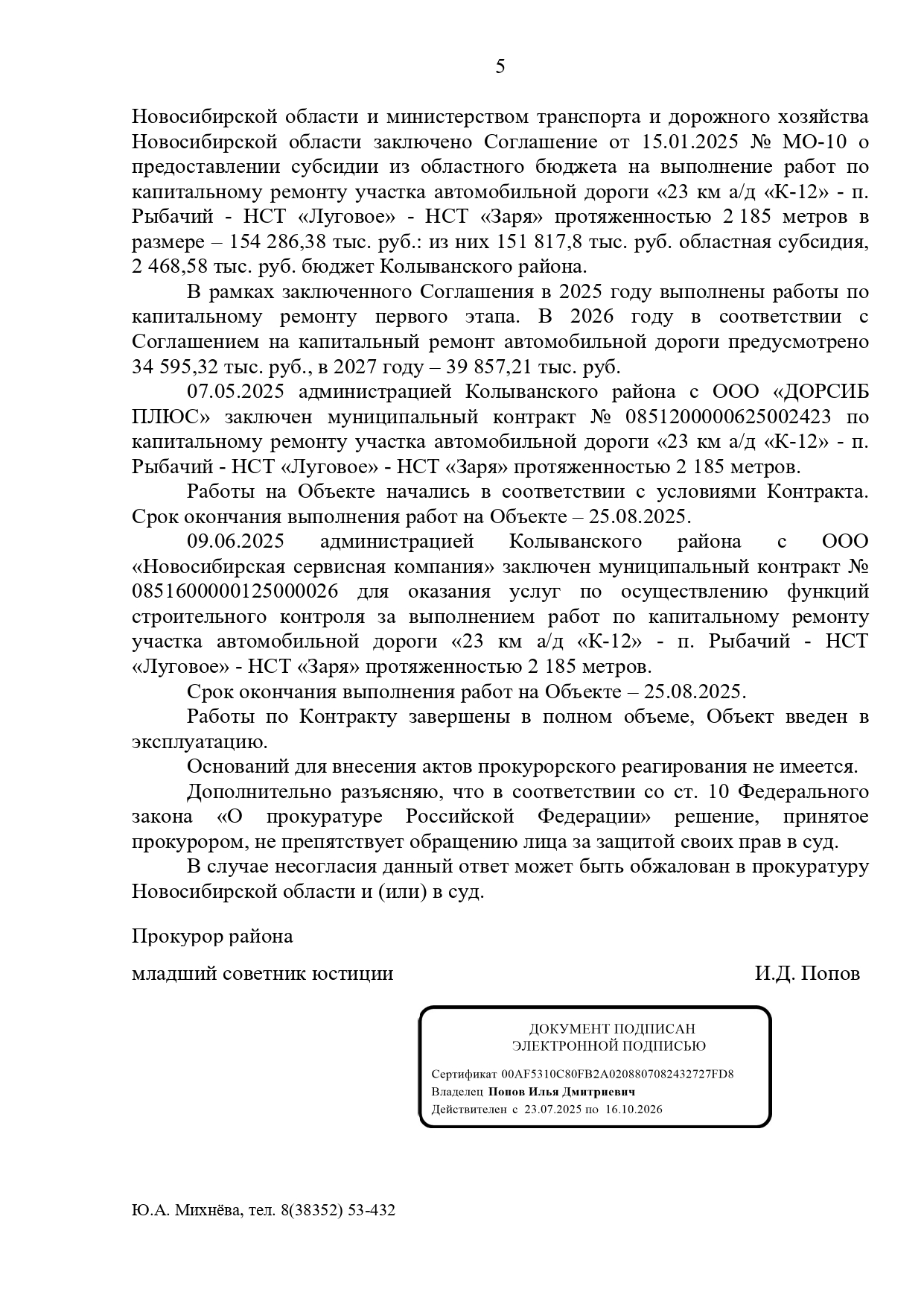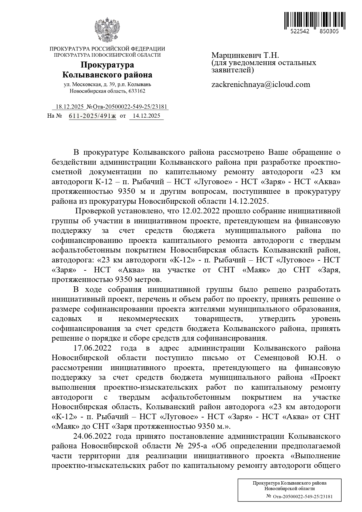 Уважаемые садоводы, ниже представлена информация по капитальному ремонту автодороги «23 км автодороги К-12 – п. Рыбачий – НСТ «Луговое» - НСТ «Заря» - НСТ «Аква» протяженностью 9350 м. Предлагаю ознакомиться с этим документом очень внимательно. Особенно последний раздел!